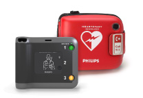 致死性の重い不整脈「心室細動」を起こした患者に、電気ショックを与え救命する装置。