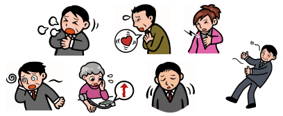 脈が乱れる、脈が跳ぶ、動悸がする 急にドキドキする、脈が速くなる、触れにくい 立ち眩みやめまいがする、脈が遅い、止まる 急に意識をなくし倒れた、失神した